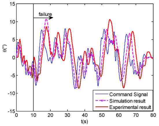 Figure 32 compares the time-domain tracking performance of the no envelope cue for the human pilot model simulation and pilot-in-the-loop experiment. The tracking trend of both is basically the same, especially 30 s after the failure. In comparison with the experiment, the simulation tracking is smoother. Figure 33 indicates the dynamic-pitch-control envelope evaluation results between the simulation and pilot-in-the-loop experiment. It can be seen that both evaluations exceed the envelope boundaries in quadrants II, III, and IV. These indicate that the human pilot model and actual human pilot are able to reach the consistent evaluation results in the case of no envelope cue.
