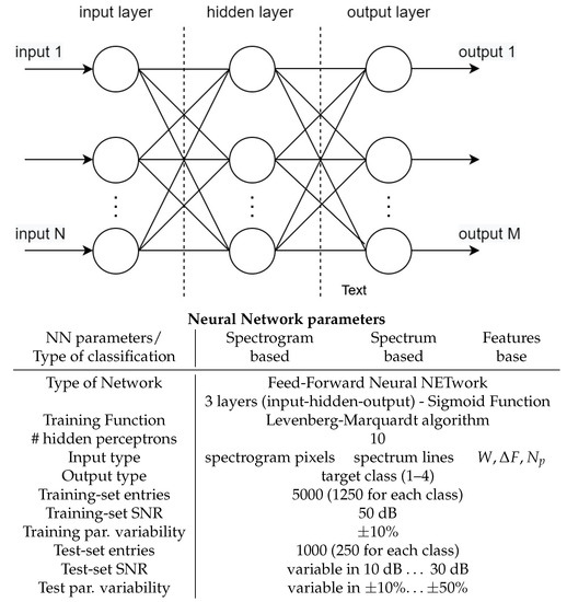 In Table 3, the physical parameters used to generate the four classes are reported, and more details on the neural network used in the simulation are reported in Figure 9.