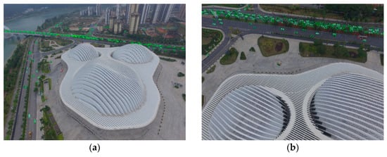 Examples of multi-view aerial images under the same scenario in the VSAI dataset: (a) the view of a higher altitude and smaller observation angle; (b) the view of a lower altitude and larger observation angle.