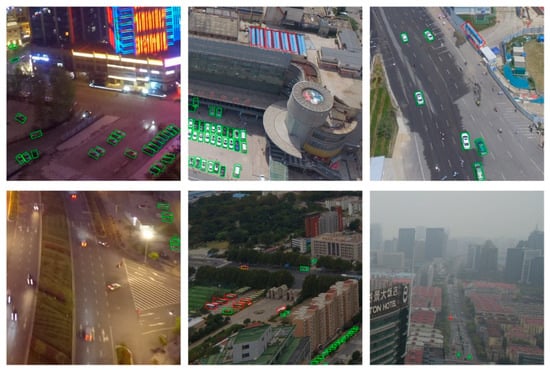 In addition to these challenges, the research on object detection in UAV images is also plagued by the dataset bias problem [14]. The generalization ability (across datasets) is often low due to some preset specified conditions, which cannot fully reflect the task’s complexity, e.g., fixed flight altitude [15,16], fixed camera pitch angle [15,17,18], narrow shooting area [16,19], clear background [20,21], etc. To improve the generalization ability of an object detection network, a dataset that adapts to the demands of practical applications needs to be created.