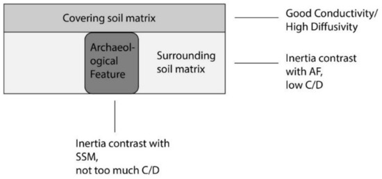 - Perisset, M.C.; Tabbagh, A. Interpretation of Thermal Prospection on Bare Soils. Archaeometry 1981, 23, 169–187. [Google Scholar] [CrossRef]