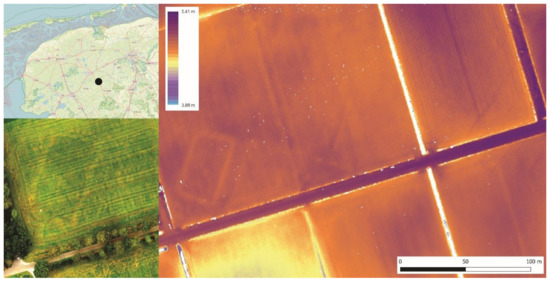 - Van Doesburg, J.; Van der Heiden, M.; Waagen, J.; Van Os, B.; Van der Meer, W. Op Zoek NAAR Lijnen: Onderzoek naar de Bruikbaarheid van Elektromagnetische Inductie en Optische en een Thermische Infraroodbeelden voor de Archeologie in Siegerswoude (Provincie Friesland); Archeologische Monumentenzorg: Amersfoort, The Netherlands, 2022. [Google Scholar]