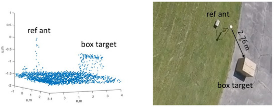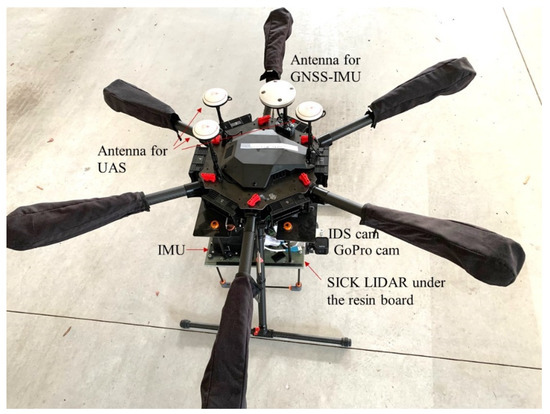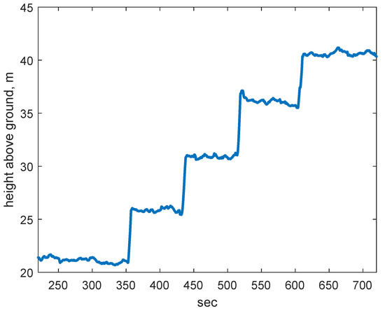 56]. However, the UAS is not required to fly at a precise altitude. Instead, the precise position of the UAS and the LIDAR will be computed in the PPK solution. Since the UAS flights discussed in this work all had open sky conditions, typically there are at least 15 GNSS satellites from GPS and GLONASS combined. The number of satellites has always been sufficient for a successful PPK or RTK solution. The precise LIDAR position, instead of the approximate flight altitude, will be used to compute a point cloud as shown in Equation (1).