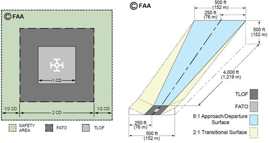 In the U.S., heliport design guidelines have an extensive history and impacted regulatory efforts worldwide. According to the World Factbook of the Central Intelligence Agency, over 80% of all heliports worldwide are located in the U.S. [56]. The current FAA heliport design guideline published in AC 150/5390-2C in 2012 [57] is building the basis for most ongoing vertiport research.