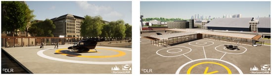 - Benkö, L. Mobilität der Zukunft Lufttaxi Uber Air Skyports. Available online: https://www.ubm-development.com/magazin/uber-air-skyport/ (accessed on 30 August 2020).