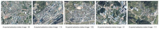 A drone generally refers to an aircraft without a pilot on board that is designed and manufactured to perform tasks that are difficult for humans by autonomously flying according to a pre-programmed function or remotely controlling the aircraft [7]. A study was recently conducted on surveying asbestos slates installed on roofs by utilizing spatial characteristics of the drone’s flight. Lee et al. [8] used drones to identify the status of asbestos slate roofs of buildings in a densely populated, old residential area. They used existing building information for comparison to uncover the differences and confirmed the usefulness of their method through on-site verification. However, drone images were analyzed with the naked eye in their study. Therefore, there was a limitation in quickly and accurately identifying the status of asbestos slate roofs of buildings in a large-scale area such as a city.