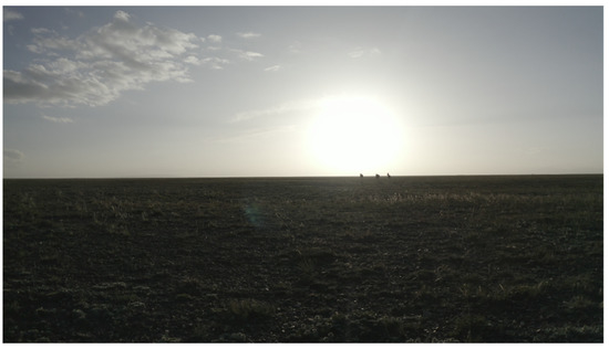 The few-shot object counting method can be used without pre-training the model via images of the target population. This improves the universality of the counting method to a certain extent, and it can be applied to many different fields. When using this method to test the photos of Tibetan antelope taken by UAVs, it has good applicability to images of different densities and perspectives. It can meet the requirements of population counting. A particular animal can be repeatedly photographed when images are stitched together because of the possible animal movements during a multi-UAV survey. Ecologists focusing on data research need to correct the survey results to ensure the accuracy of data results, which has become a necessary research subject [48]. Therefore, it is essential to reduce the mission time of such investigations. The information obtained directly from traditional ground surveys is often one-dimensional. The distribution of all animals may be visually linear (Figure 14) if interpreted from an image perspective when surface observation is conducted on the ground [49]. These factors often lead to significant errors in the results, which is not conducive to animal counting. When compared with traditional field survey methods by vehicle or on foot, UAV surveys have a better field of view (Figure 7, Figure 8 and Figure 9) and have reduced the impact of animal movements on the data to a large extent, which can improve the survey accuracy.