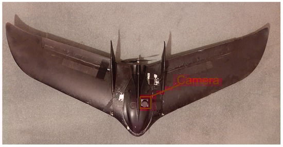 We compare here the simulation output with images captured during a flight to evaluate the performance of the simulator. Attitude logs from the flight test were recovered, and used to generate these simulation images. We followed the procedure outlined in Section 2 for image generation. We used a Phantom FX-61 airframe (Figure 5), with a PixHawk v2 autopilot, a Raspberry Pi 4 companion computer for image capture and storage and a Raspberry Pi High Quality Camera sensor, mounted with the official 6mm wide-angle lens. The camera was rigidly mounted to the autopilot, so as to mechanically couple sources of vibration and deflection. An approximate transform from aircraft body frame to camera frame is used for this test, at a yaw angle of , pitch angle of 90 and roll angle of 0 (given a yaw-pitch-roll Euler sequence).