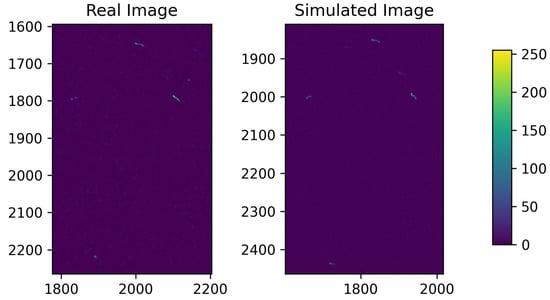 Furthermore, we consider the difference between the centroids of stars detected in both simulation and reality. A region of interest (ROI), , is chosen for each star such that is the smallest grayscale image that contains the star. We compute the weighted centre for both real and simulated images, expressed with respect to the centre of the ROI: