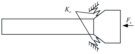 The locking force Fx in the x direction generates a lateral contact force Fcx on the V-shaped contact surface, creating a contact stiffness on the V-shaped contact surface. The wing root can be equated to a support structure as shown in Figure 18. The support of the contact surface can be equated to a spring of the same stiffness.
