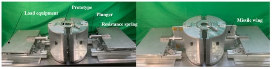 According to the design index of the wing deployment mechanism, the wing is subjected to a normal load that varies linearly with the push-out distance during the deployment process. The load was equated to a spring load, and the launch function test was conducted on the missile wing deployment mechanism under loading conditions. The test device is shown in Figure 33. The test of the wing deployment process under the applied load condition, the wing can be pushed out quickly under the normal load that varies linearly with the push-out distance in the range of 0~700 N.
