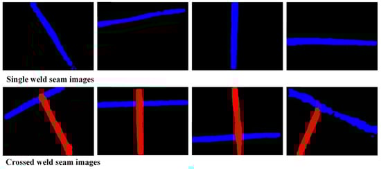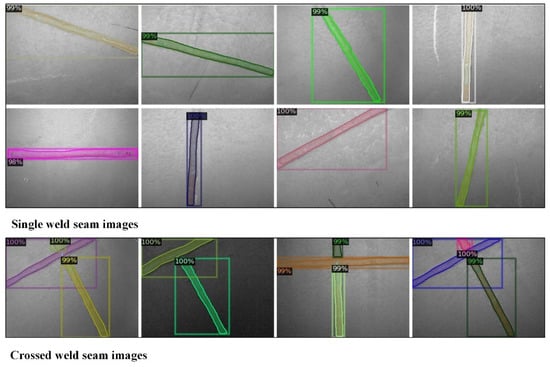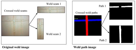 In general, the crossed weld seam is considered to be a special welding joint, so the crossed weld seam is defined as a combination of two weld seams. Therefore, the optimal weld path can be efficiently processed. In the weld identification phase, Mask R-CNN has a more obvious advantage in segmenting multiple weld seams; these weld seams are distinguished by different color pixels.