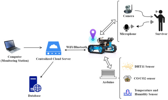 - Internet of Things (IoT): Used to stream the location of the detected survivors to a centralized cloud server and to determine the air-quality index of the disaster-affected area.