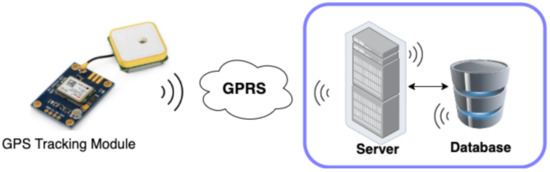 The GPS tracking module transmits the location coordinate data to the geo-tracking server. In order to do so, it is required to be connected to the GPRS network. The geo-tracking server is a standard PC, preferably Linux based, with support for applications such as PHP, Apache Web Server, and MySQL. [22].