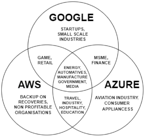 - Dutta, P.; Dutta, P. Comparative Study of Cloud Services Offered by Amazon, Microsoft and Google. Int. J. Trend Sci. Res. Dev. 2019, 3, 981–985. [Google Scholar] [CrossRef]