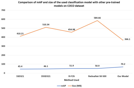 Comparison of mAP of the used classification model with other pre-trained models on COCO dataset [29].