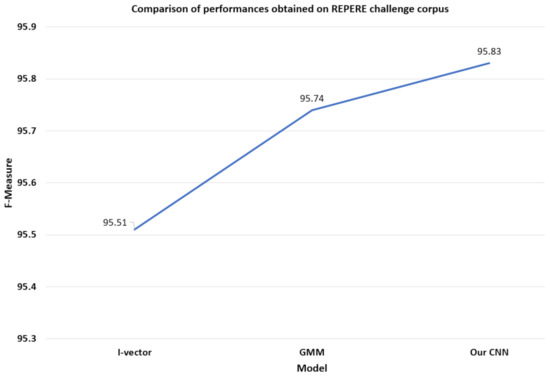 The REPERE challenge corpus is an annual French challenge that aims to support the ongoing research works in the field of object detection. We compared the F-measure obtained in the case of our CNN with the other standard models that participated in the challenge. Table 7 and Figure 16 compare the performances obtained in the REPERE challenge corpus dataset in terms of the F-measure.