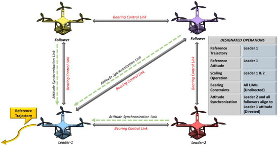 - Huang, Y.; Meng, Z. Bearing-Based Distributed Formation Control of Multiple Vertical Take-Off and Landing UAVs. IEEE Trans. Control Netw. Syst. 2021, 8, 1281–1292. [Google Scholar] [CrossRef]