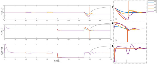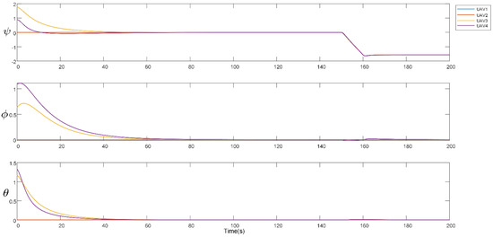 - Results: in Figure 5 at t = 150 to 180 s, it can be seen that the final formation was rotated from the initial formation heading direction by altering the leader’s orientation so that the formation takes a translational rotation. The formation tracking error also converged to zero as shown in Figure 6 (section highlighted in orange color).