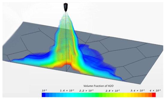 Figure 6. Injectorsdeployed to make the droplet distribution realistic; the color distribution relates to the H2O volume fraction.