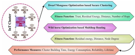 In the presented DMOSC-MHRS technique, a new DMOSC technique is utilized to choose CHs and create clusters. The FF in this MOTAHO is used for choosing the topical CH derived. Now, the FF is expressed by the four dissimilar parameters namely number of hops, trust, distance, and residual energy (RE) [19].