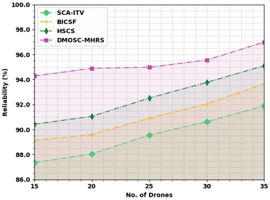 Reliability analysis of DMOSC-MHRS approach under distinct drones.