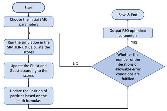 The general approach in this manuscript can be summarized as follows: We first utilized the mathematical model of the UAV to design the inner/outer loop SMC. The UAV model as well as the SMC architecture is next implemented in MATLAB/SIMULINK to verify the reliability of SMC. This architecture also includes disturbance observers who are able to compensate against disturbances. Benchmark PID controllers are also implemented in these simulations. Next, PSO was used as an offline optimization tool to intelligently iterate the controller’s parameters to improve, for example, the settling time, overshoot, and tracking performance.