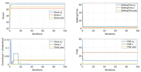 - Gomez, V.; Gomez, N.; Rodas, J.; Paiva, E.; Saad, M.; Gregor, R. Pareto Optimal PID Tuning for PX4-Based Unmanned Aerial Vehicles by Using a Multi-Objective Particle Swarm Optimization Algorithm. Aerospace 2020, 7, 71. [Google Scholar] [CrossRef]