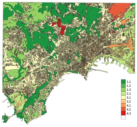 - Class 3 includes urban environments. In this scenario a subclassification is performed to distinguish between buildings and populated areas such as squares and streets;