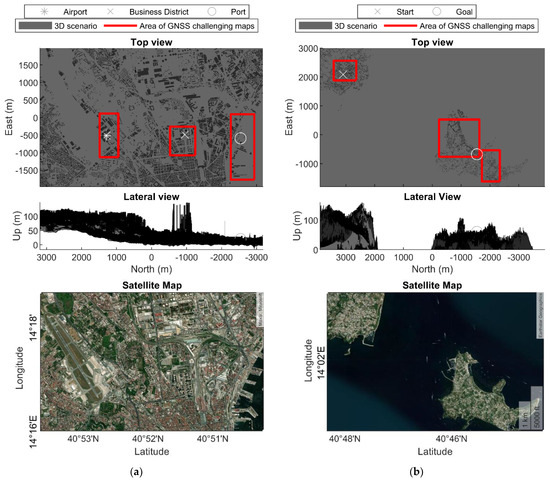 - 3D map with fixed obstacles and no fly zones. Fixed obstacle maps are obtained from publicly available representation of the environment available on open source platforms, such as CityGML [19] or OpenStreetMap.