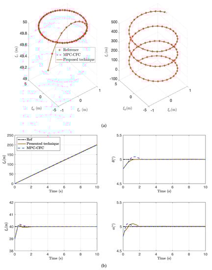 This section explains the presented control approach, illustrated in Figure 4. Reference trajectory is employed to generate a particular flight envelop in different scenarios during the time interval , which is expressed as: