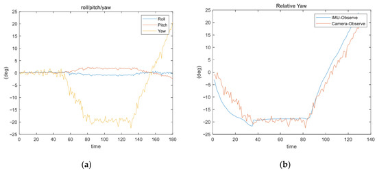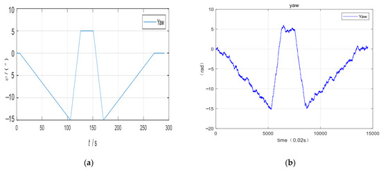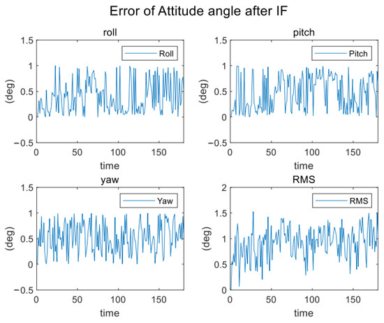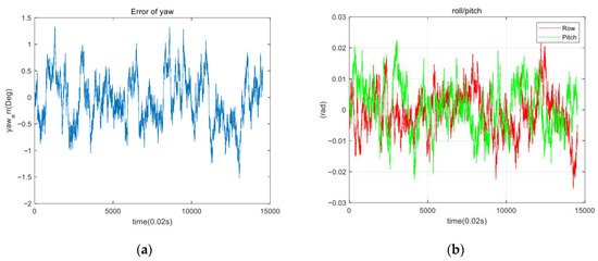 We have . The error of attitude angle in three axes is selected as observation, in this way, the observation matrix H will be linear. The observation is directly obtained by subtracting the angle measured by the sensor from the attitude angle calculated by the IMU inertial navigation solution. Although the accuracy of loose combination will decrease compared with that of tight combination, the linear observation equation of loose combination will not introduce high-order error.