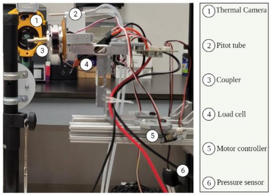 A test rig to measure the propulsion system’s performance is designed and manufactured. With some additions to the test rig, it is possible to conduct flow visualization using a laser and smoke generator. Furthermore, applying a thermal camera makes it possible to capture the thermal images of the propulsion system. The measurement system was used to evaluate the coupling system of the propulsion system. Furthermore, the motor enclosure’s thermal and aerodynamic effect on the propulsion is investigated, which will be discussed in the following sections.
