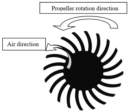 The motor base is attached to the heat-sink surface, as shown in Figure 13, in order to experimentally investigate the performance of the heat sink with the motor. The performance is measured for the system without a heat sink (motor with casing), a system with a heat sink while the fins are in the propeller rotation direction (PD), and a system with a heat sink while the fins are counter to the propeller rotation direction (CPD). Also, as shown in the previous section, the motor is operated with two RPMs: 50% (left) and 75% (right). The results in Figure 14 show the effectiveness of the heat sink in cooling the motor and making use of the slipstream air. In both cases (PD and CPD), it could reduce the motor temperature. Placing the heat sink in the PD position significantly reduced the motor temperature. It is believed that putting the sink in this position makes the airflow take longer time as shown in Figure 15. The heat sink could improve the thrust, torque, and efficiency; however, it is not possible to observe the difference between the PD and CPD cases, as the difference is less than the measurement-system resolution.