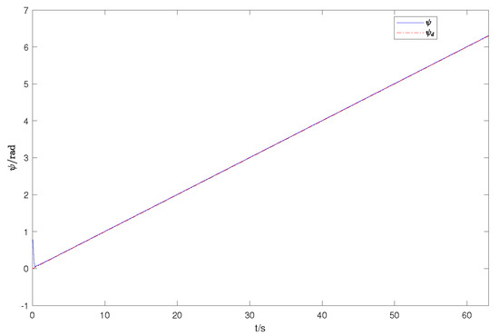 According to (2), a coordinate transformation matrix appears in the design process of the controller, which brings some difficulties. From the elements in the coordinate transformation matrix, it can be seen that the matrix is about the sin and cos functions. It is noted that the sin function and the cos function are both bounded functions, so we can conclude that the transformation matrix is also bounded. At the same time, we can also obtain . When designing the virtual controller (21), is used, which does not produce excessive controller output behavior.