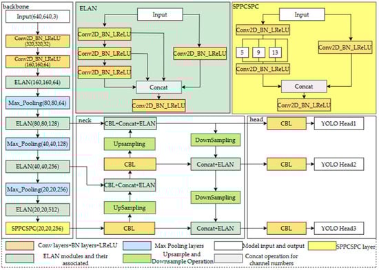 For the feature extraction network, YOLOv7-Tiny adopts the ELAN (efficient layer aggregation networks) structure, which is an efficient layer aggregation network. ELAN is mainly composed of VOV-Net and CSP-Net. Its function is to avoid using too many transition layers and reduce those that are unnecessary. The necessary parameters shorten the feature extraction path and increase the extraction efficiency.