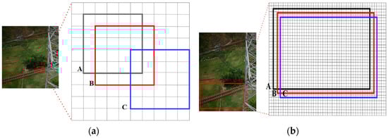 CIoU is very sensitive to the position deviation of small targets that occupy fewer pixels [37]. If there is a slight position deviation in the position of the tiny target, the intersection of union (IoU) will drop significantly, greatly affecting the model accuracy. Taking Figure 10a as an example, damaged insulators belong to small objects, while insulators belong to ordinary objects, and the bounding boxes generated by them are shown in Figure 11. Box A represents the ground-truth bounding box, and boxes B and C represent the predicted bounding boxes with 1-pixel and 4-pixel diagonal deviation, respectively; thus, the corresponding intersection ratios can be calculated.