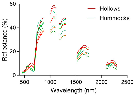 - Salko, S.-S.; Juola, J.; Burdun, I.; Vasander, H.; Rautiainen, M. Intra- and interspecific variation in spectral properties of dominant Sphagnum moss species in boreal peatlands. Ecol. Evol. 2023, 13, e10197. [Google Scholar] [CrossRef] [PubMed]
