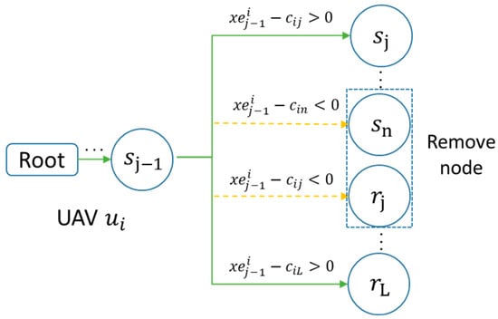 Selection and Expansion Optimization Strategy (SEOS): In the selection phase of the MCTS, this strategy ensures that, in an iteration, in addition to considering the reward values of the nodes, there is no task conflict between each UAV. In the expansion phase, this strategy considers the energy consumption of UAVs and selectively expands the possible tasks according to the current energy status of UAVs. This method can efficiently build different nodes in the tree.