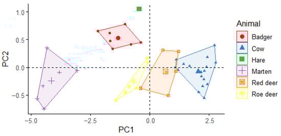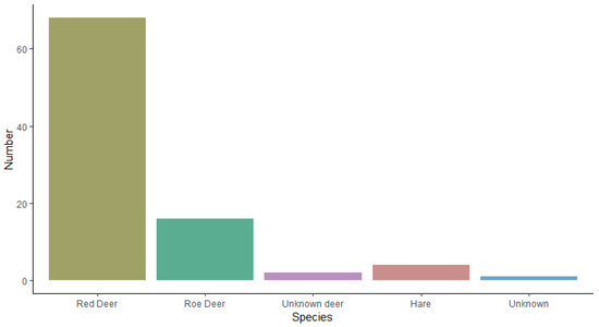 - Fløjgaard, C.; Haugaard, L.; de Barba, M.; Taberlet, P.; Ejrnæs, R. A DNA-Based Survey of Diet Choice in Red Deer in Klelund Dyrehave. A Survey of the Spacial and Timely Variation in the Diet Choice of Red Deer (In Danish Fødevalg Hos Krondyr i Klelund Dyrehave. Undersøgelse af Den Rumlige og Tidsmæssige Variation i Krondyrenes Fødevalg). DCE National center for Environment and Energy, Aarhus University. 2016, 190, p. 60. Available online: https://dce.au.dk/udgivelser/vr/nr-151-200/abstracts/no-190-a-dna-based-study-of-food-choices-by-red-deer-in-klelund-dyrhave (accessed on 14 December 2022).