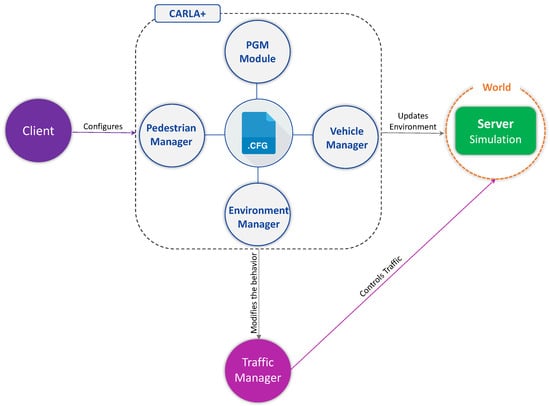 In this section, we discuss the development of CARLA+ and its components. The proposed high-level architecture of CARLA+ is presented in Figure 4.