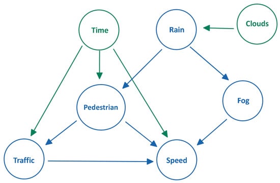 - It is instrumental in understanding the complex relationship between a set of random variables. This is an important feature because the considered problem domain involves several variables (e.g., number of vehicles, number of pedestrians, vehicle speed, weather state, time of the day, distance from other vehicles and objects, road markings, road signs, road traffic lights, etc.) Furthermore, these variables have an impact on one another, resulting in much more complex interparameter relationships;