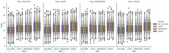 Distributions of Traffic count with respect to Rain, Clouds, and Fog.