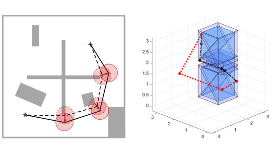 - Deits, R.; Tedrake, R. Efficient mixed-integer planning for UAVs in cluttered environments. In Proceedings of the 2015 IEEE International Conference on Robotics and Automation (ICRA), Seattle, WA, USA, 26–30 May 2015; IEEE: Piscataway, NJ, USA, 2015; pp. 42–49. [Google Scholar]