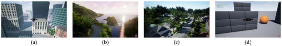 - Shah, S.; Dey, D.; Lovett, C.; Kapoor, A. AirSim: High-Fidelity Visual and Physical Simulation for Autonomous Vehicles. In Proceedings of the Field and Service Robotics, Zurich, Switzerland, 12–15 September 2017. [Google Scholar]