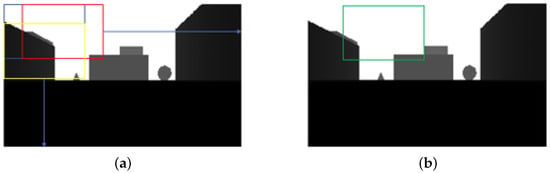 Here, is an output of the CGAN discriminator. An additional intelligence m is added to the input to improve performance compared to conventional GAN. and are predicated on binary logarithmic loss, and and are probabilities which these discriminators identify an input as ground truth. Also, these losses only add more relevance to the estimator, and the error is likely to be large for depth estimation. Therefore, we use the L1 loss as in Pix2Pix to give an absolute value error as shown in Equation (5).