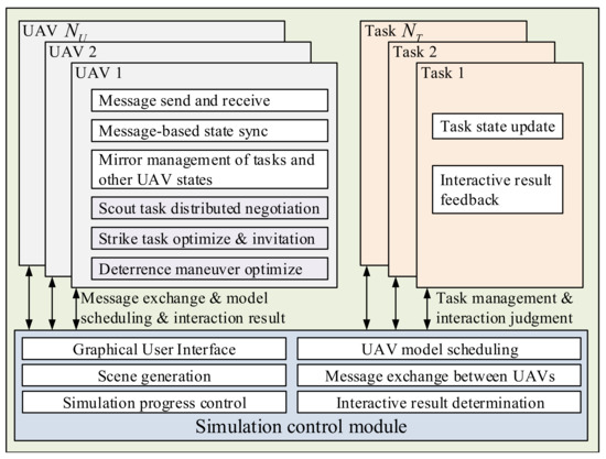 Figure 2. Distributed simulation environment for heterogeneous UAV reconnaissance and strike tasks.