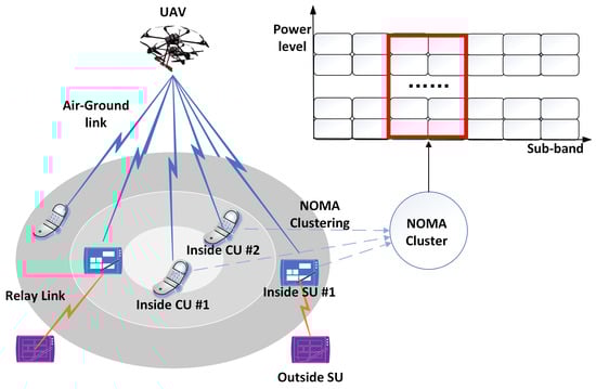 On the other hand, NOMA transmission provides an effective solution to satisfy the transmission requirement for different users using limited system bandwidth. Compared with orthogonal multiple access (OMA), NOMA can increase the spectrum efficiency by allowing multiple users sharing the same channel resource. Reducing energy consumption and guaranteeing the QoS of users are the key problems in NOMA-enabled networks. Since ground CUs and IoT devices are energy-constrained, power control is a crucial issue to be handled. In addition, to facilitate rescue, the rate requirement of users should be guaranteed. Therefore, the trade-off between reducing energy consumption and ensuring the QoS of users in the air–ground heterogeneous network should be achieved, which pose a huge challenge to the traditional orthogonal resource allocation scheme. However, in the literature, there is little research focusing on reducing energy consumption while guaranteeing the different QoS requirements of users in NOMA-enabled heterogeneous networks. Hence, the optimization of relay selection and resource allocation in NOMA transmission is needed.