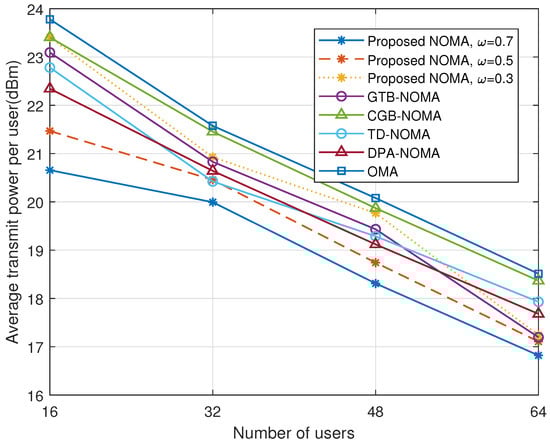 Figure 7. Impact of different number of users on average transmit power.