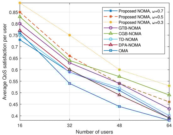 Figure 8. Impact of different number of users on QoS satisfaction.